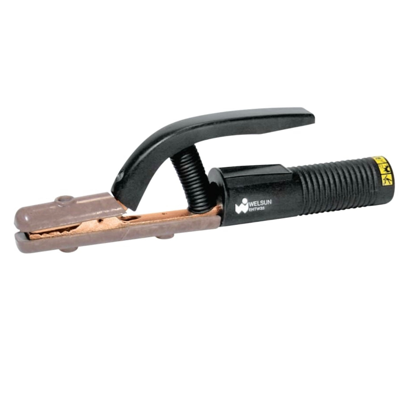 | Electrode Holder-High Tong Type, 500 A, Brass, For 1/0 Cable, 4 mm Cap, 9.5 in L |